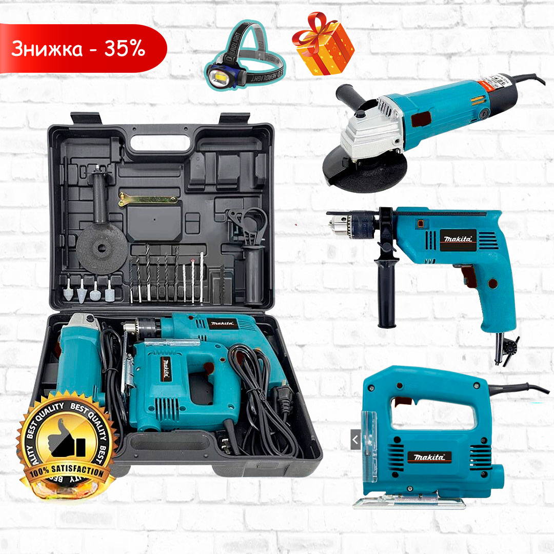 Набір 3 в 1 - це незамінний помічник у кожному будинку або на дачі. У комплект входить 3 електроінструменти та набір свердел, біт і насадок для шліфування.